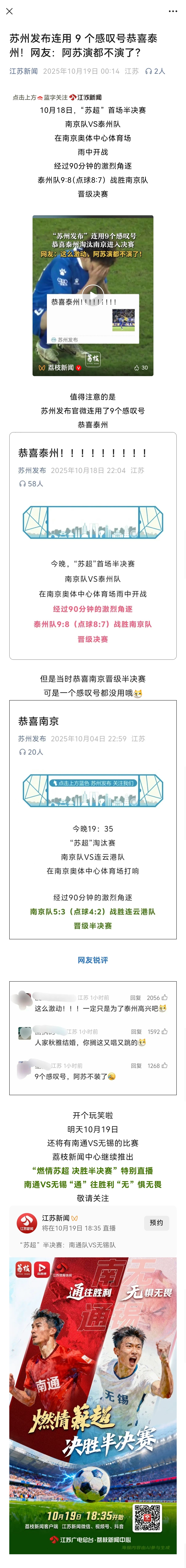 苏州发布连用 9 个感叹号恭喜泰州!网友:阿苏演都不演了?