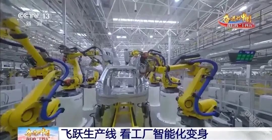 在重庆一家汽车生产工厂的产线上有超3000台机器人,这里可以实现关键工序100%自动化,还有超1000个AI视觉检测点,零件有没有瑕疵AI数秒内就能判断。