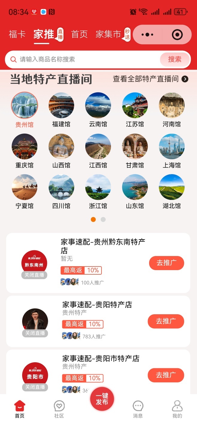 家事速配创新推出运营中心直播模式,让特产销售更加直观、透明。各运营中心通过直播平台,直接将产地情况、制作过程、产品特色展示给消费者。